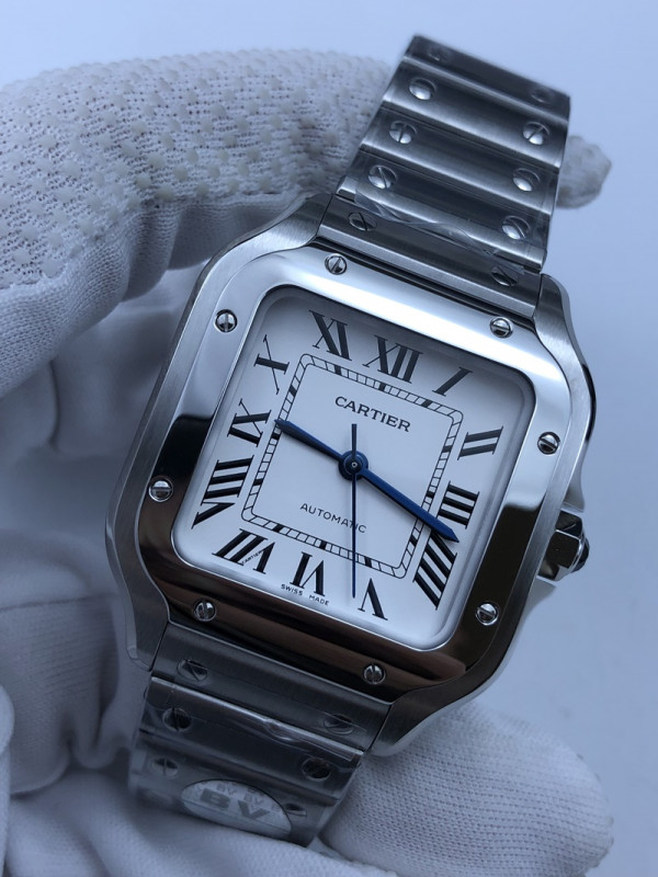 (준비완료/특급배송/)NO.540/BV공장 까르띠에 산토스 미디움 스틸 화이트다이얼 35MM +가죽/버클
